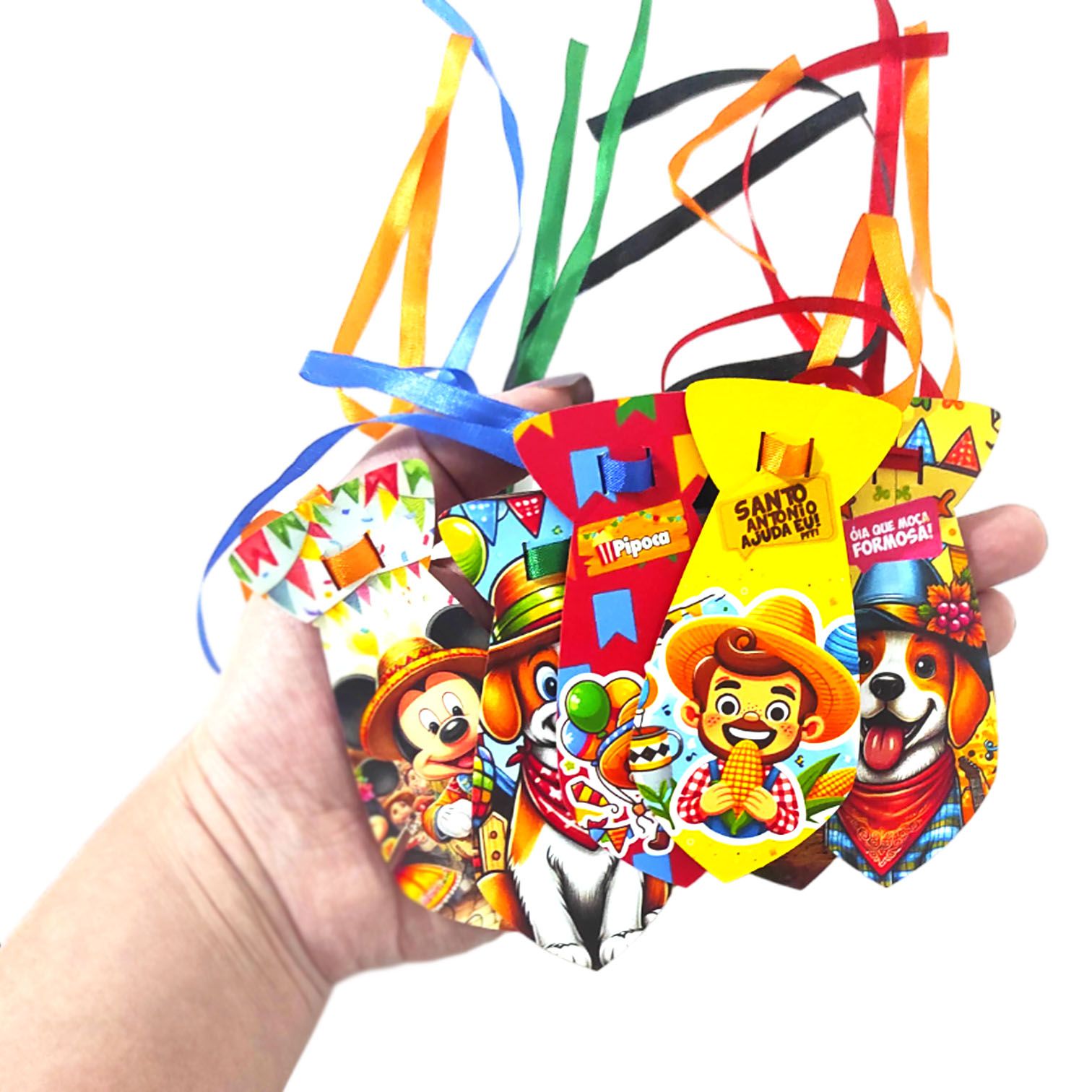 -Gravatas exclusivas com desenhos temáticos de Festa Junina;