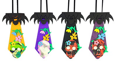 Na embalagem contém com 10 / 20 / 50 unidades de gravata MEXICANA HALLOWEEN em E.V.A