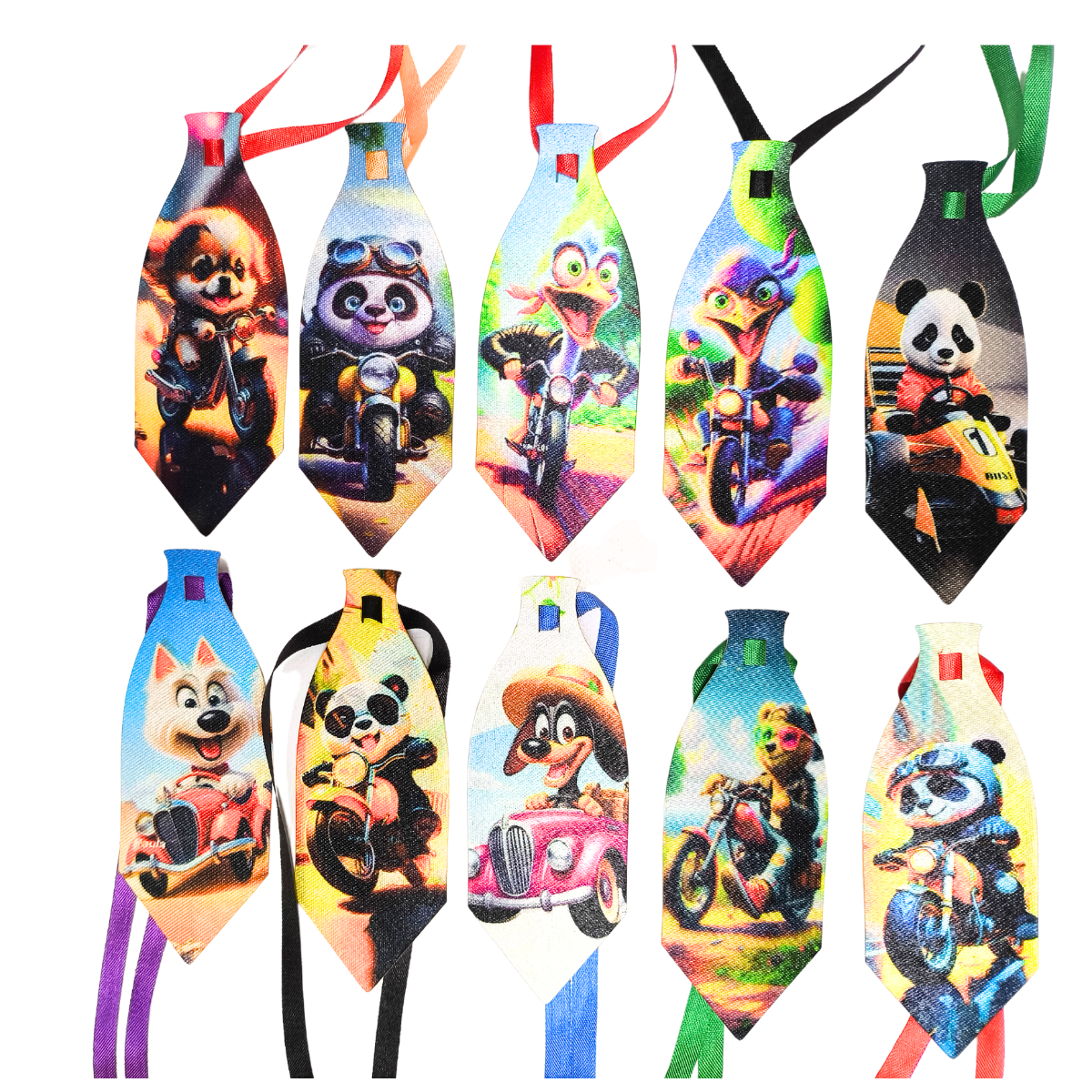Nossa Gravatinha Animais é confeccionada em tecido duplo com trama de nylon SUPER RESISTENTE. Não estoura com facilidade.