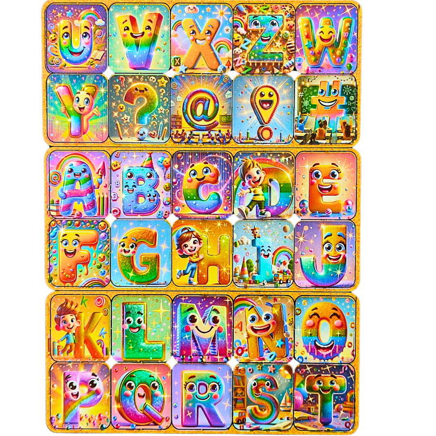 Peças coloridas com letras e símbolos interativos