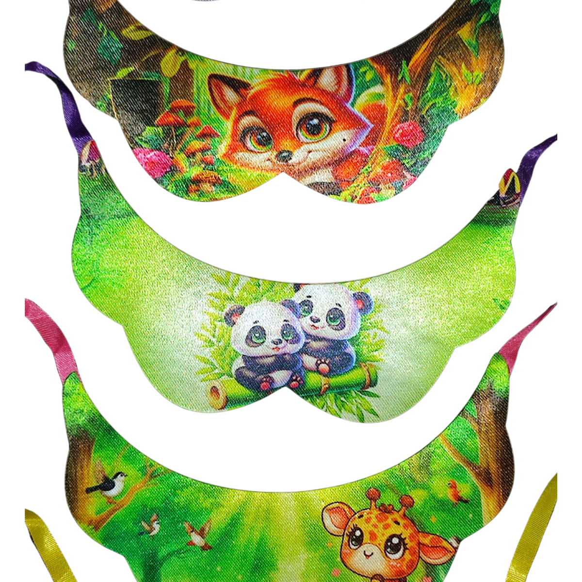 • Fitas de cetim em cada lado, facilitando a amarração no pescoço