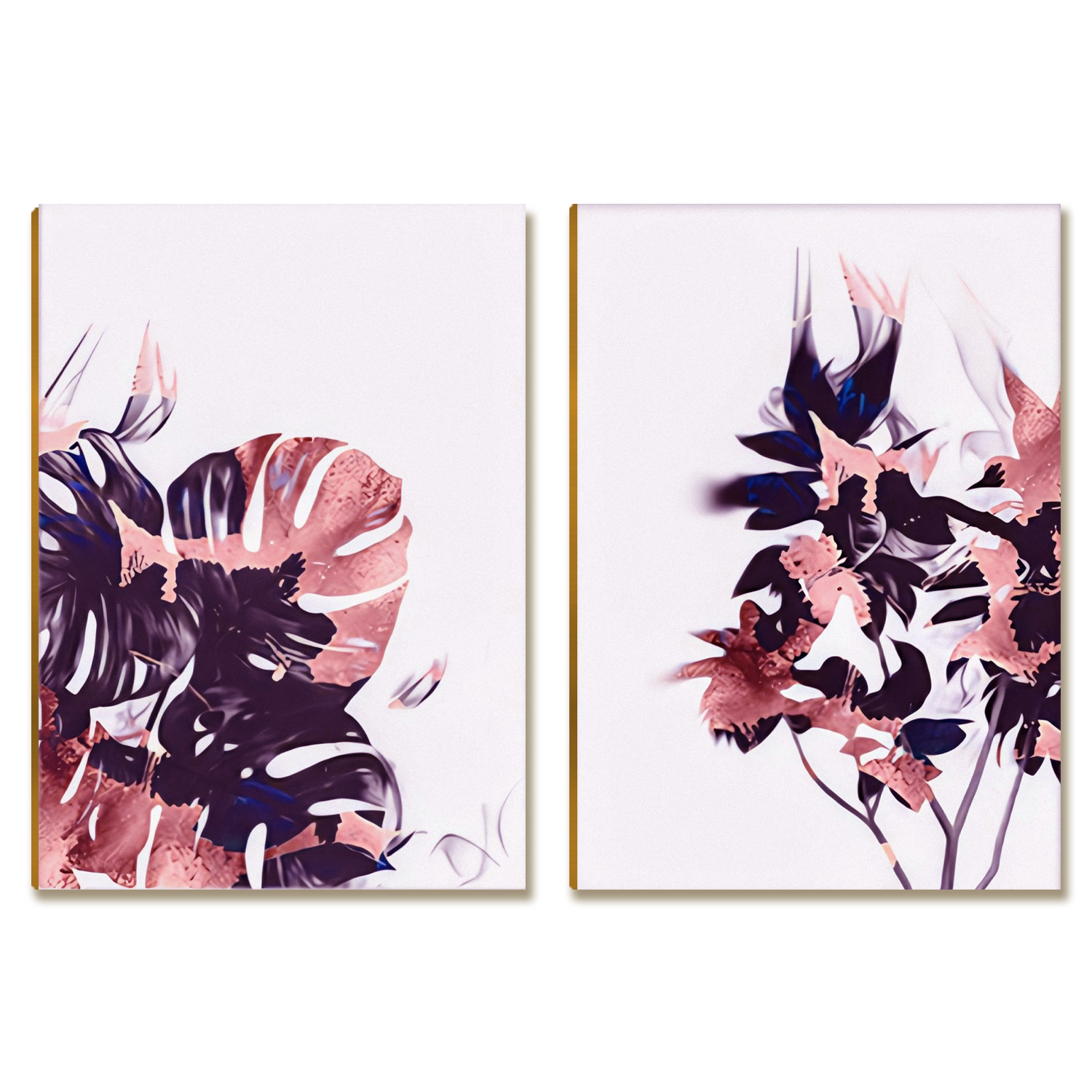 Kit 2 Placas MDF Abstrato Floral Rosé Moderno Parede A4