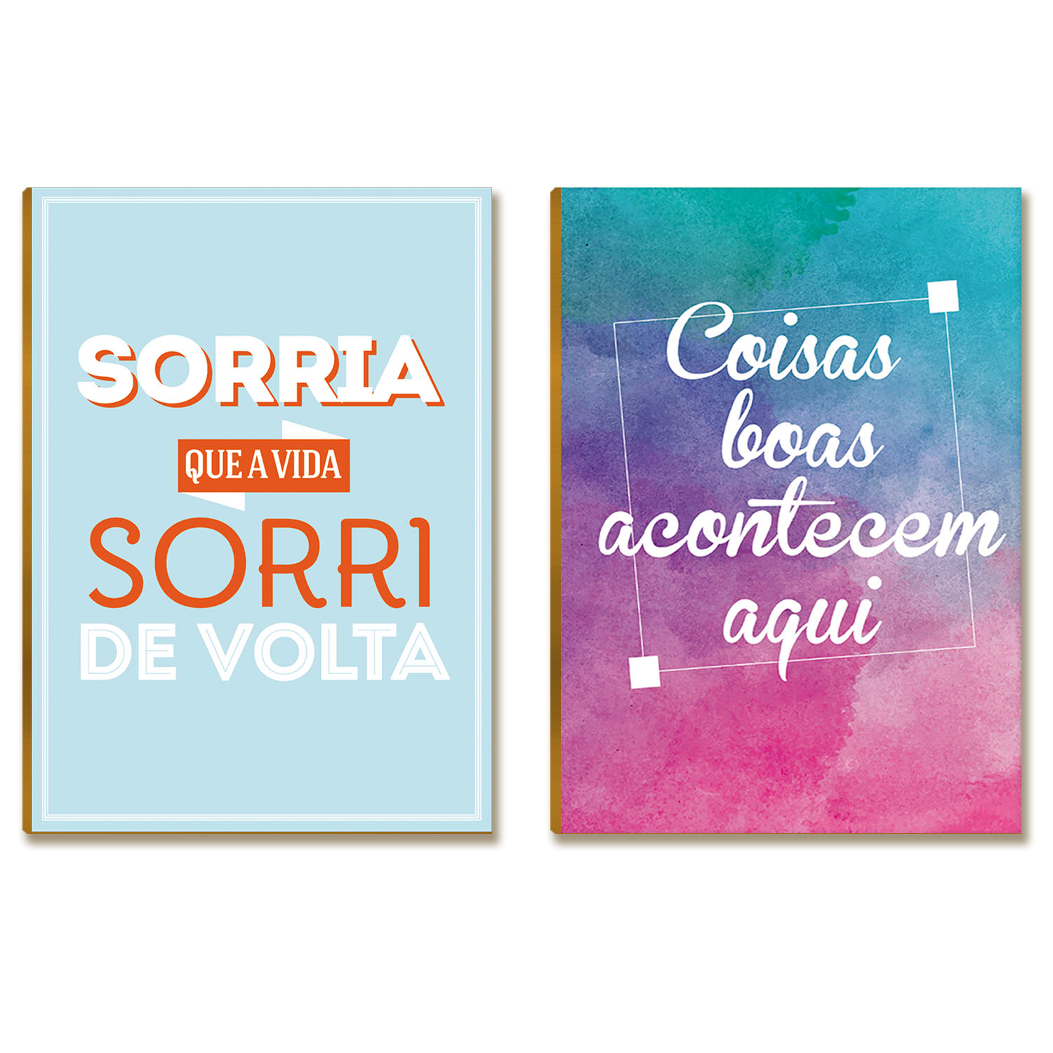 Kit 2 Placas MDF Coisas Boas Acontecem Aqui Decorativa DC28