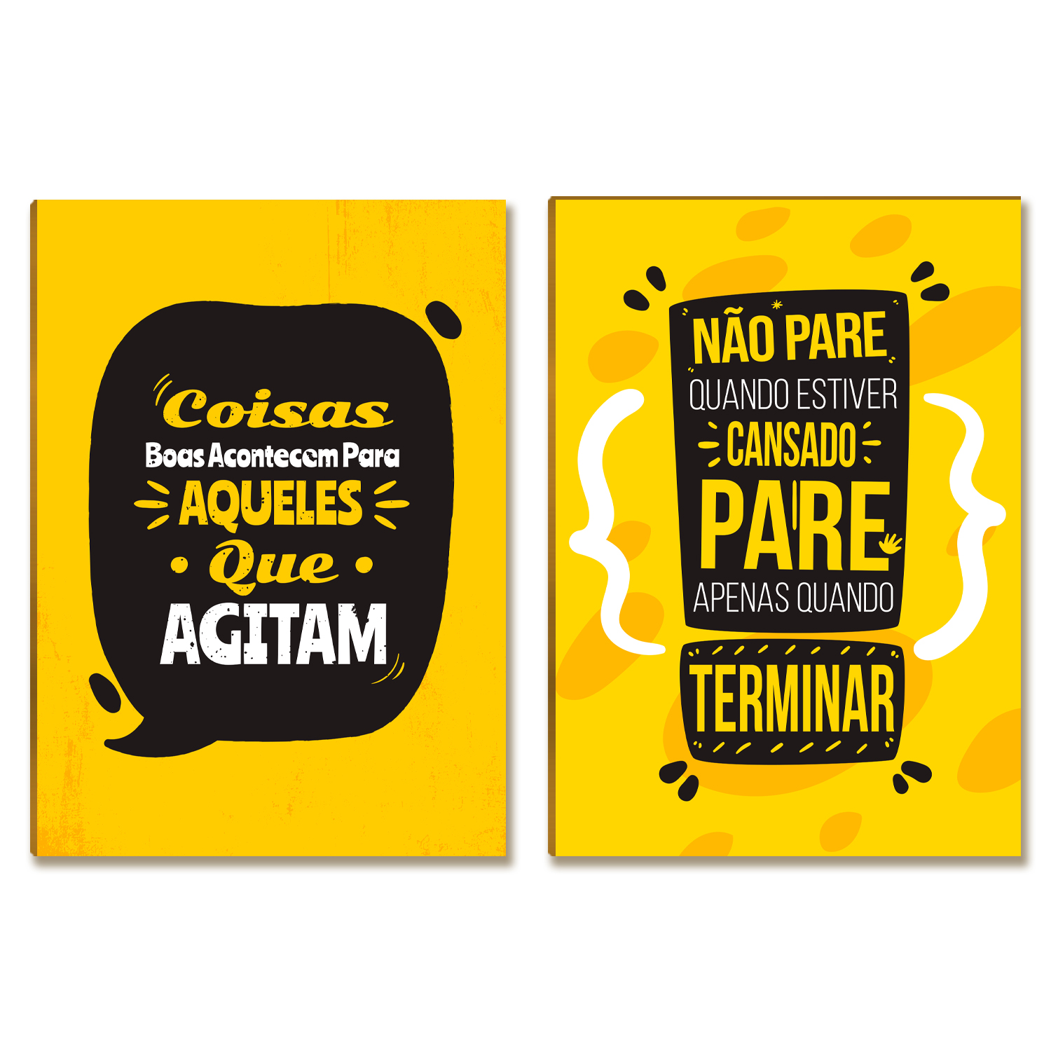 Kit 2 Placas MDF Frases Motivacionais Amarelas Parede A4