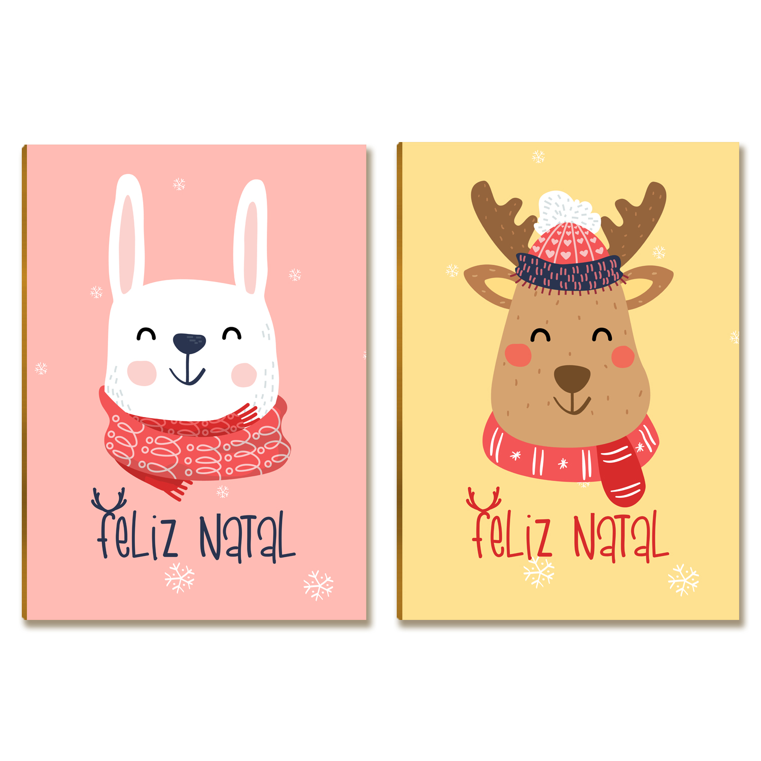 Kit 2 Placas MDF Natal Coelho e Rena Fofos Decor Festas A4
