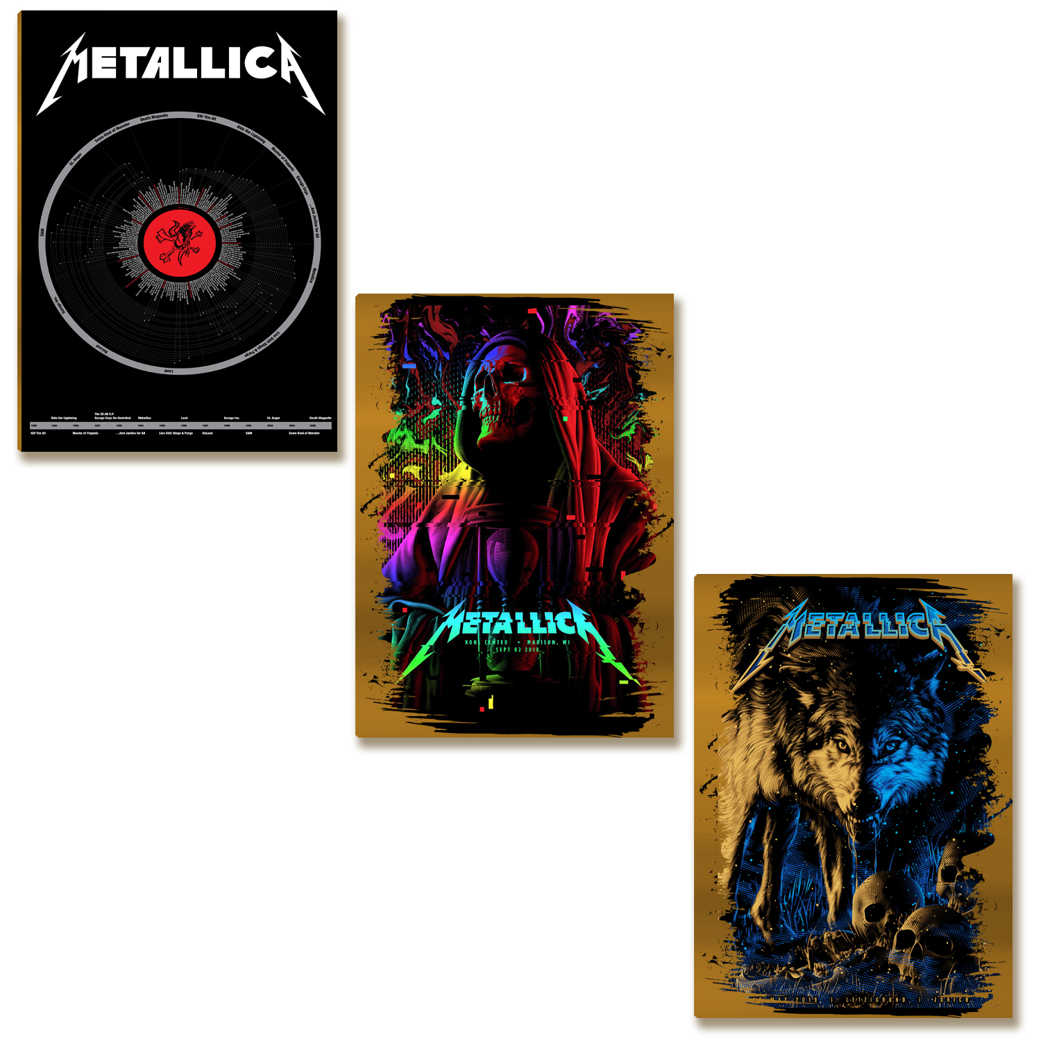 Kit 3 Placas MDF Metallica Relógio Caveira Lobos Decor Rock