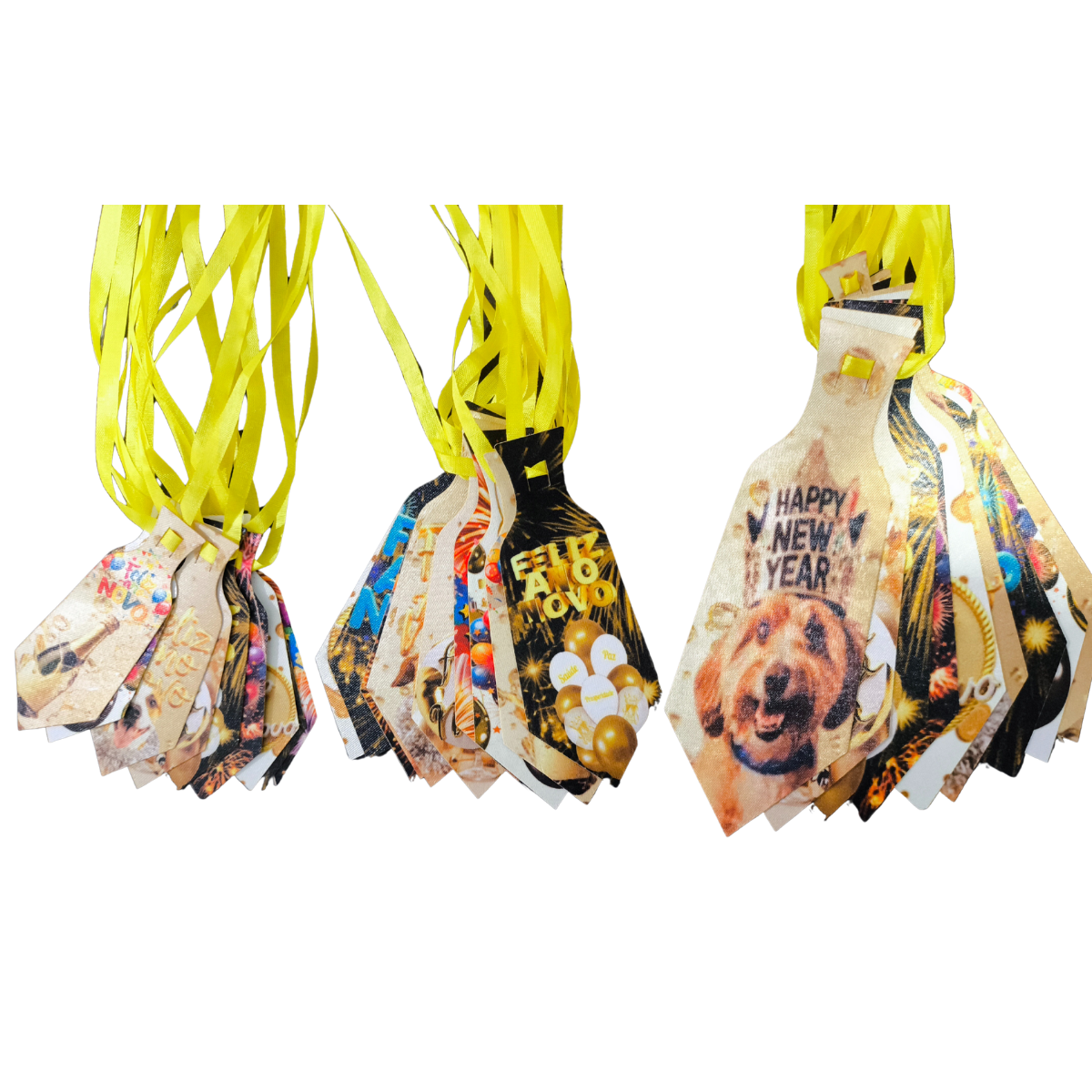 A Gravata de Ano Novo MimoShow é confeccionada em tecido acetinado de alto brilho, com estampa exclusiva e acabamento profissional, criada para deixar os pets ainda mais bonitos na comemoração mais esperada do ano.