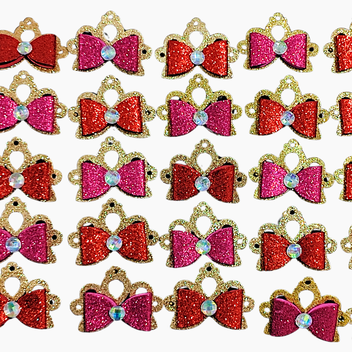Deixe o visual dos cães mais elegante e delicado com o laço coroa com strass, feito em EVA macio com glitter e já acompanhado de liguinha própria para o pelo do pet.