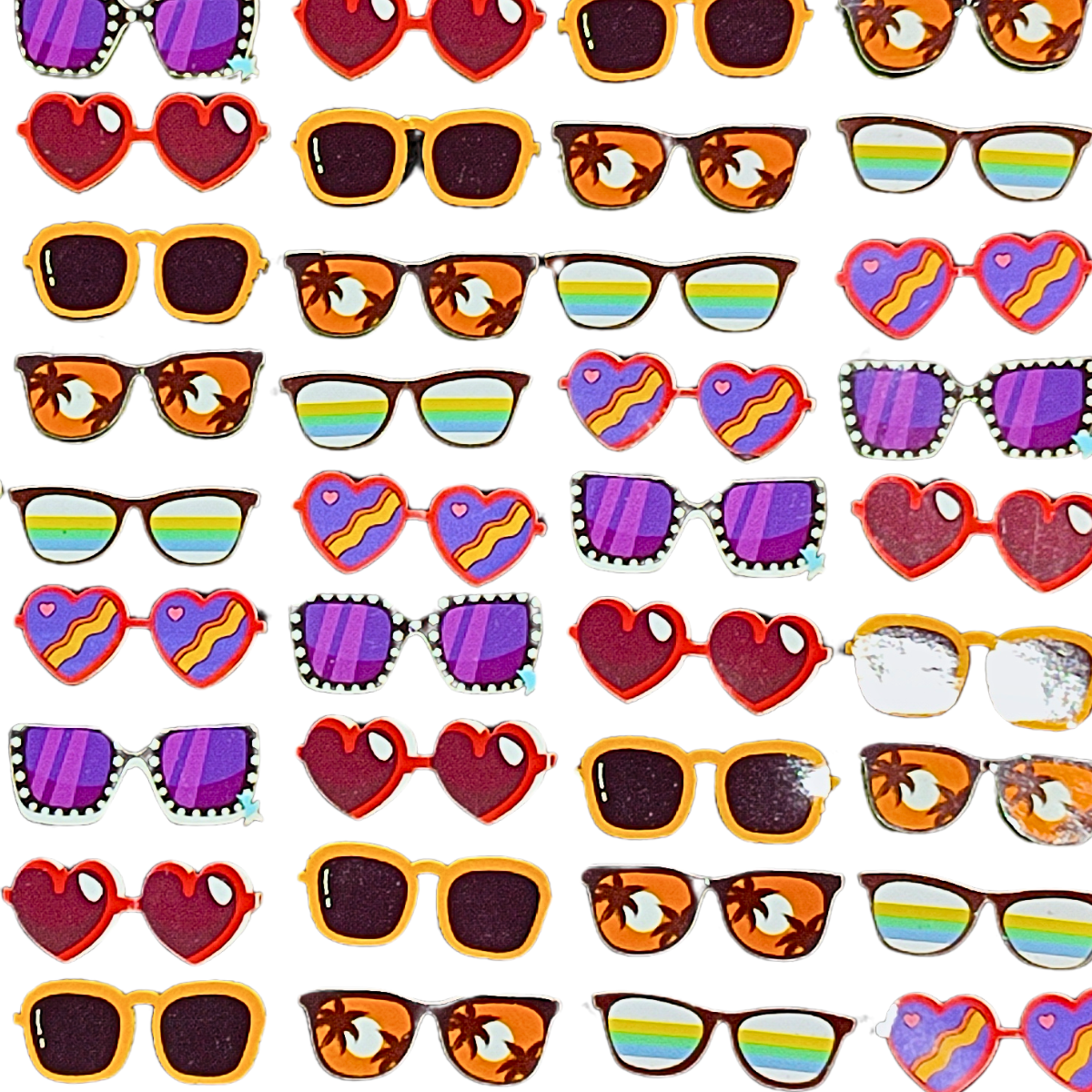 Produzidos em EVA macio, cada óculos adesivo mede aproximadamente 4,6 cm de largura por 2,6 cm de altura, tamanho ideal para uso estético em cães e gatos de pequeno e médio porte.
