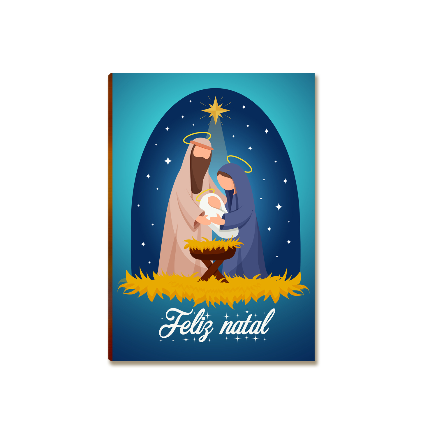 Placa MDF Natal Sagrada Família Presépio Feliz Natal A4