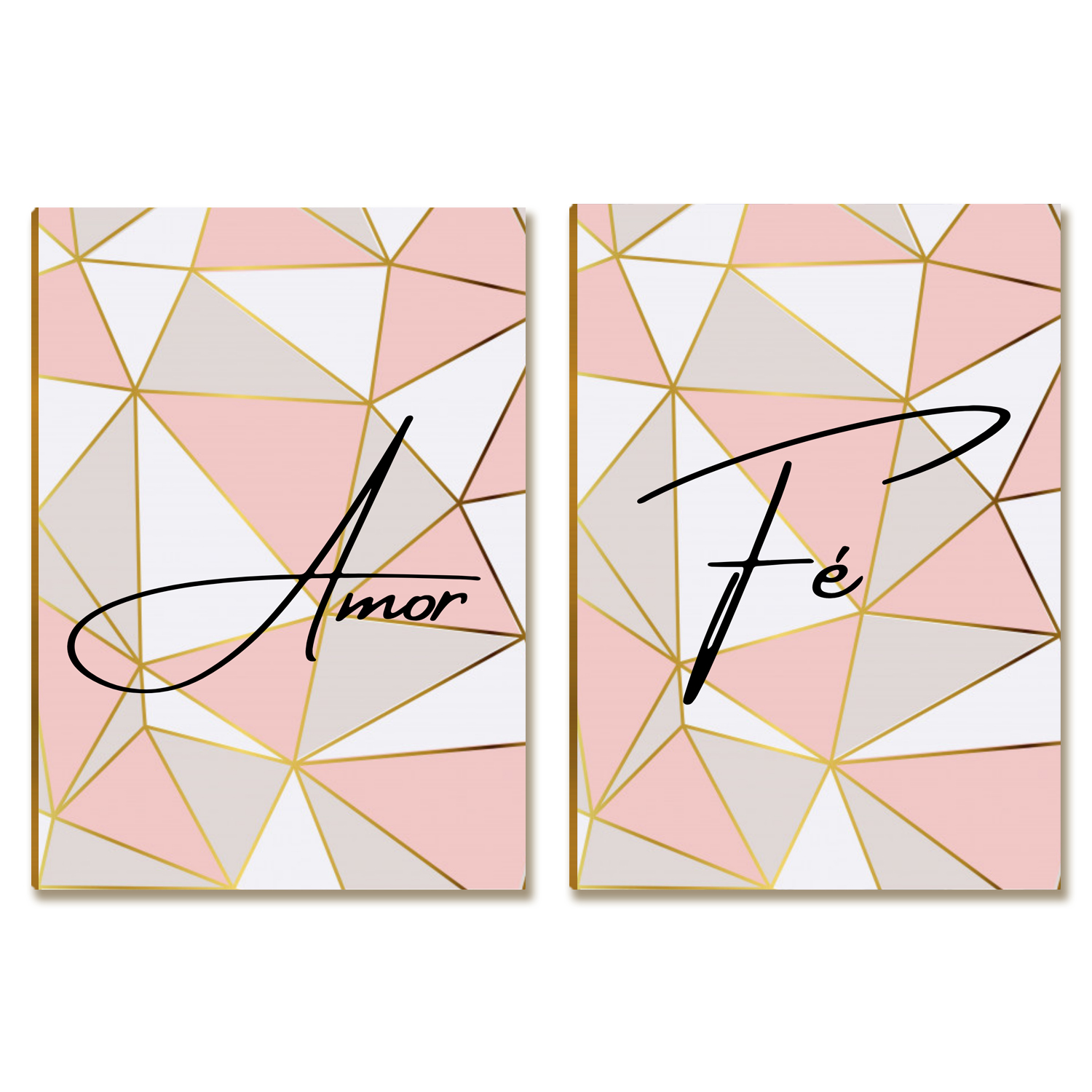 Conjunto 2 Placas MDF Amor e Fé Geométrico Rose Gold Parede Moderna A4. Decoração elegante e contemporânea que combina fé e amor em traços refinados.