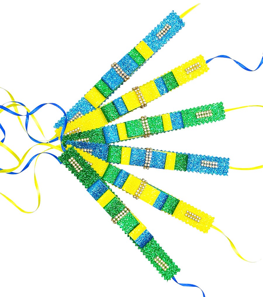 Na embalagem contém 50 unidades de gargantilhas COPA em E.V.A com glitter