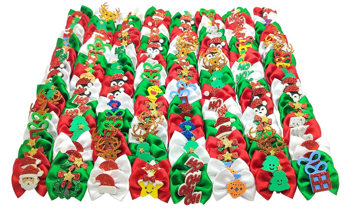 Na embalagem contém 20 unidades de laços Natal em CETIM.