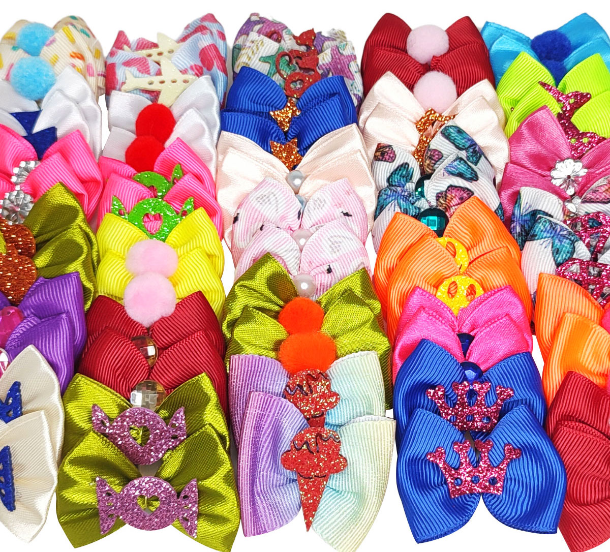 Na embalagem contém com 50 unidades de laços MISTO em cetim e gogurão com aplique em E.V.A, pompom, meia pérola e chaton.